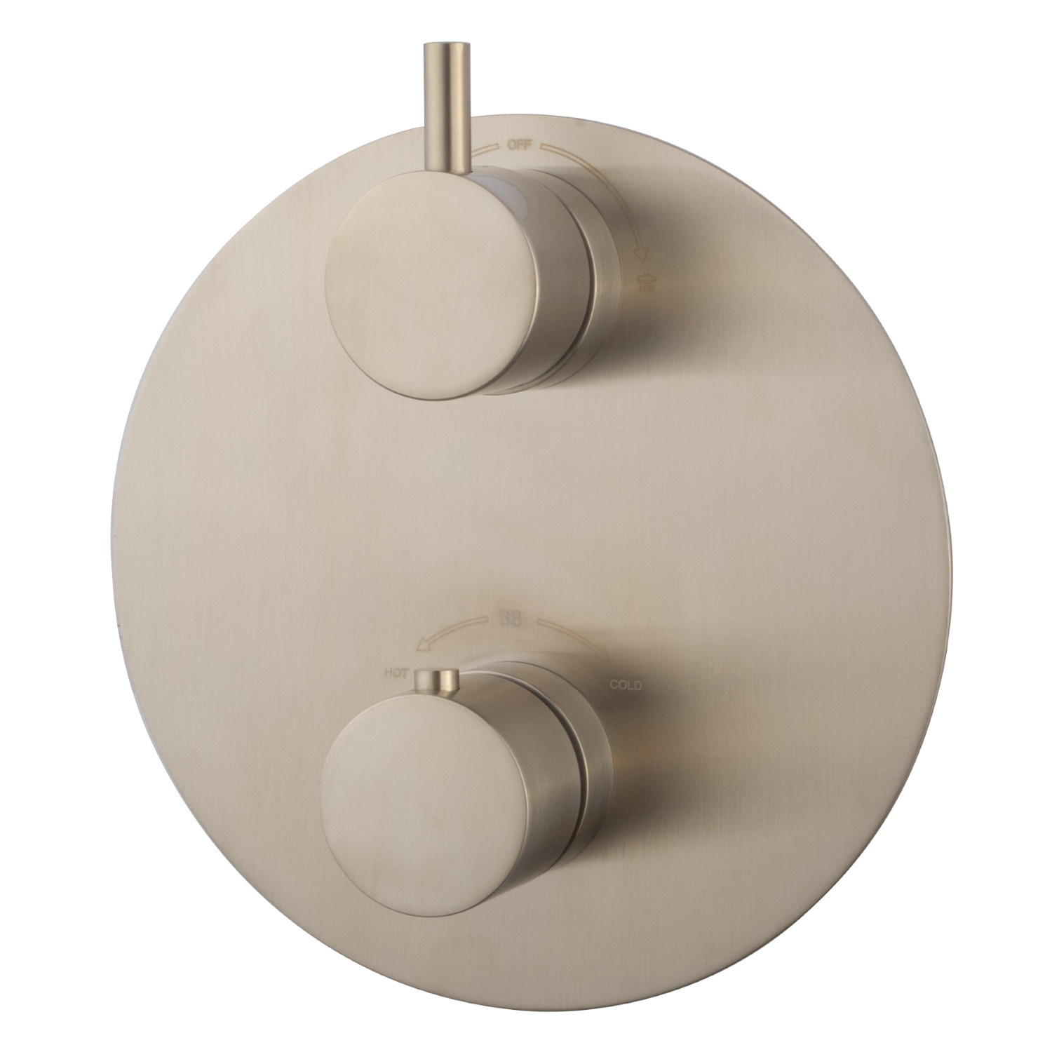 Dit BWS Afbouwdeel Cemal Douche Thermostaat 2-Weg Rond RVS is van het merk Boss & Wessing. Het merk Boss & Wessing staat garant voor kwaliteit en design. Deze RVS thermostatische douchekraan is de eyecatcher van uw badkamer! In combinatie met andere RVS elementen creëert u een badkamer rijk aan design! De thermostaat bestaat uit twee bedieningen: een bediening is voor de thermostaat en de andere bediening gebruikt u om de kraan mee aan of uit te zetten en u kunt bepalen welke van de twee aansluitingen u wilt gebruiken. Bijvoorbeeld om de handdouche of de hoofddouche aan te zetten. Deze luxe is ideaal voor als u even heerlijk wilt ontspannen. De aftappunten zijn niet tegelijkertijd te gebruiken.