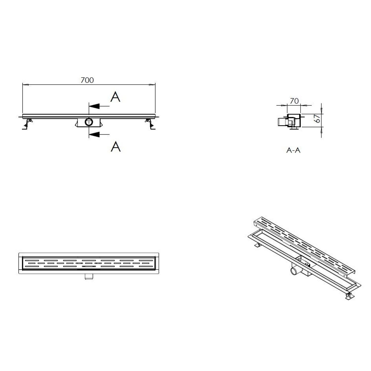 De douchegoot is voorzien van een stijlvol rooster met gunmetal afwerking. De douchegoot heeft een donkere uitvoering en maakt hierdoor het verschil in uw badkamer. Het rooster is 70x7x6.7 cm, echter ook verkrijgbaar in meerdere maten. Het voordeel van een douchegoot is dat u het sifon eruit kan halen om schoon te maken. Met het haarfilter kunt u de goot nog schoner houden en u voorkomt hiermee verstopping.