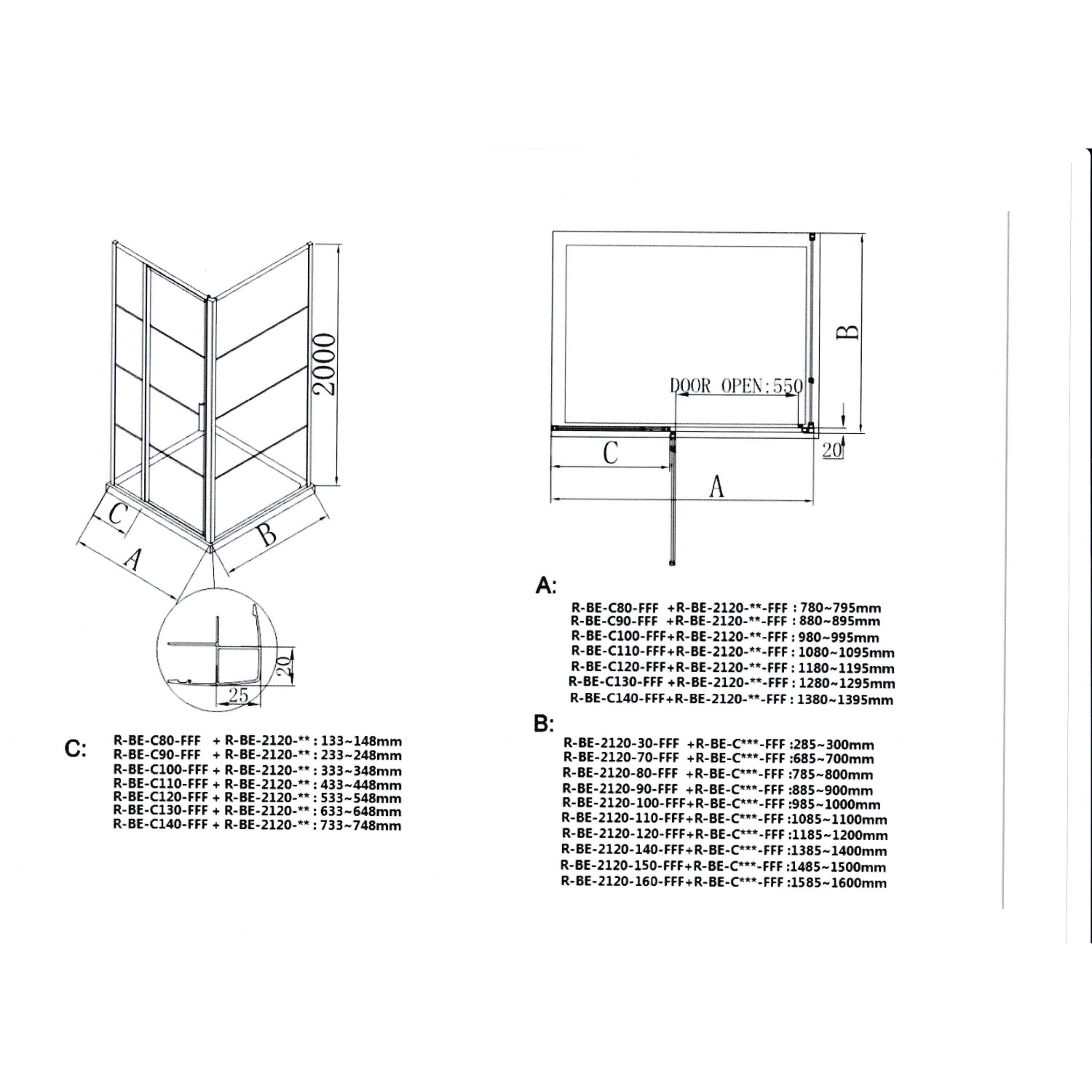 De nisdeur kent een breedte van 90 cm en een hoogte van 200 cm. Het heldere glas kent een dikte van 8 mm en is voorzien van NANO Coating veiligheidsglas: dit zorgt ervoor dat er geen ongewenst vuil en kalk achterblijft op het glas. Het water loopt makkelijk van de wand af en de coating zorgt voor een glanzende uitstraling. Dit zal tijd besparen met schoonmaken.