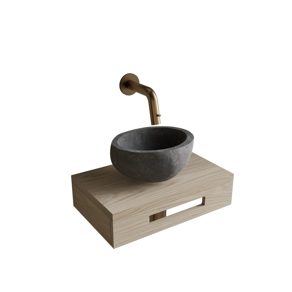 Bij deze set is in begrepen een Natuursteen Waskom, een duurzame en stijlvolle waskom in elegante grijze kleur en met een afmeting van 25 cm breed en 15 cm hoog. Een prachtige fonteinplank in een eiken kleur voorzien van een handige uitsparing aan de voorkant voor het ophangen van handdoeken. De plank is 40 cm breed en 25 cm diep. Bovendien zijn ook inbegrepen de goude Accessoires; een mat goude fonteinkraan met een aansluiting van G1/2,een bijpassende goude plug en een goude sifon.