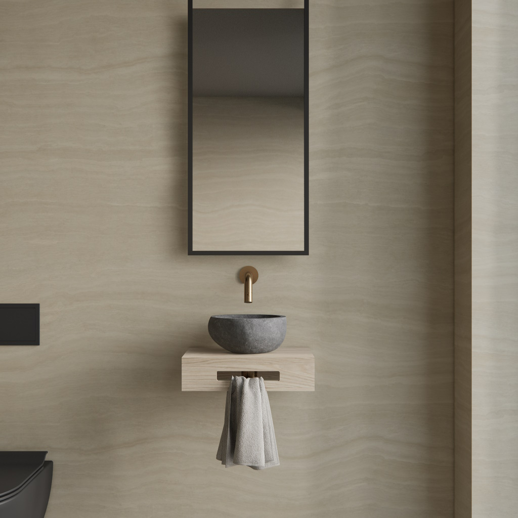 De fonteinplank wordt geleverd zonder afvoergat, zodat u zelf kunt bepalen waar u het gat voor de waskom wilt plaatsen. Maak van uw badkamer een stijlvolle en functionele ruimte met de Complete Fonteinset BWS Hold!