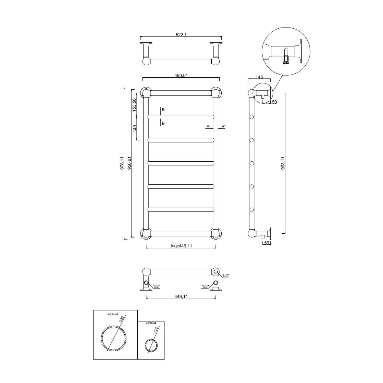 Deze mooie designradiator van serie Uno kan door zijn unieke design geplaatst worden in iedere gewenste ruimte. Met het ingetogen ontwerp is de handdoekradiator elegant en stijlvol. De breedte van deze radiator is 49.3 cm, de hoogte 95.1 cm en het vermogen bedraagt 175 Watt. U kunt deze radiator gebruiken bij een centrale verwarming.