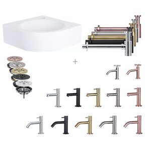 Fonteinset Differnz Mix En Match Cleo Hoekfontein 30x30x10 cm Keramiek Wit (Keuze Uit 5 Kleuren Kranen)