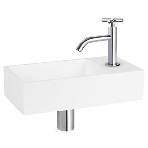 Fonteinset Differnz Solid Solid Surface 36x18.5x9 cm Wit Met Gebogen Kruis Kraan Chroom