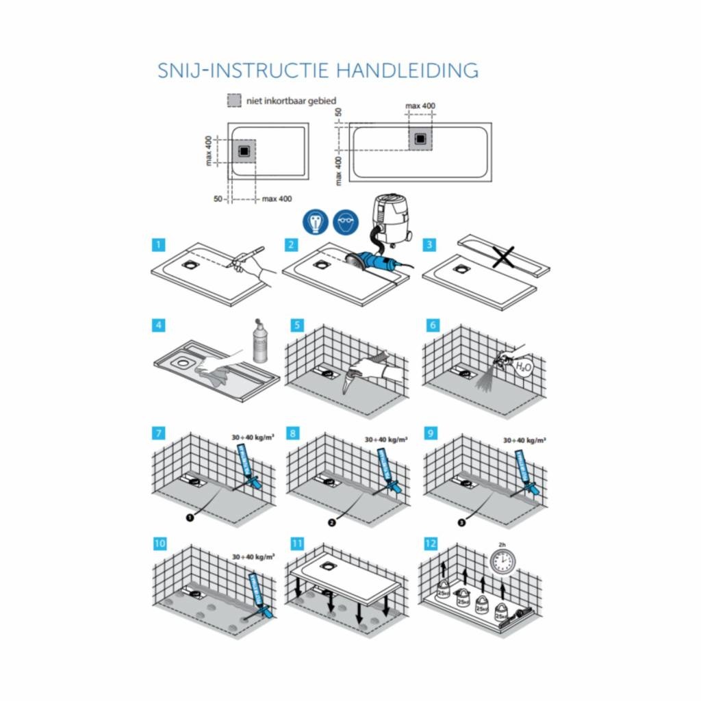 Let op! Rondom de afvoer kan een gebied ter grootte van 40x40 cm niet ingekort worden.