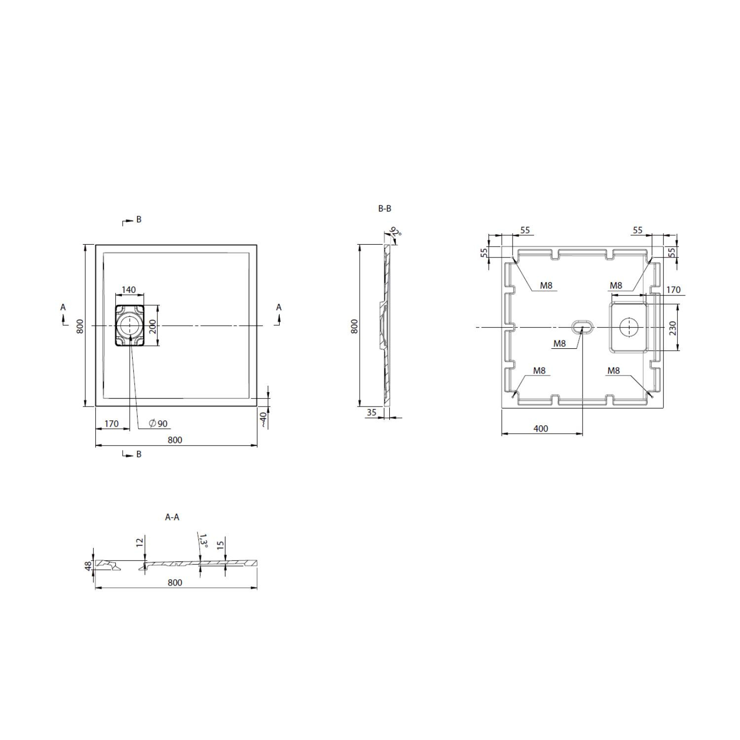 Douchebakken kunnen standaard op de volgende manieren worden geïnstalleerd: