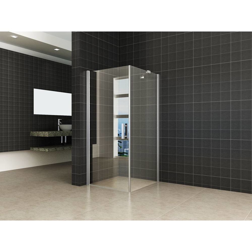 Zeer fraaie swingdeur met zijwand. De deur is 90 cm breed en 200 cm hoog. De wand is 90 cm breed en 200 cm hoog inclusief 2 chromen wand profielen welke 20mm aan beide zijden verstelbaar zijn. Deze douchecabine is universeel te installeren (deur links of rechts). Het glas is 8mm dik met NANO anti-kalk behandeling. Verstelbaar van 87,5 tot 90 centimeter.