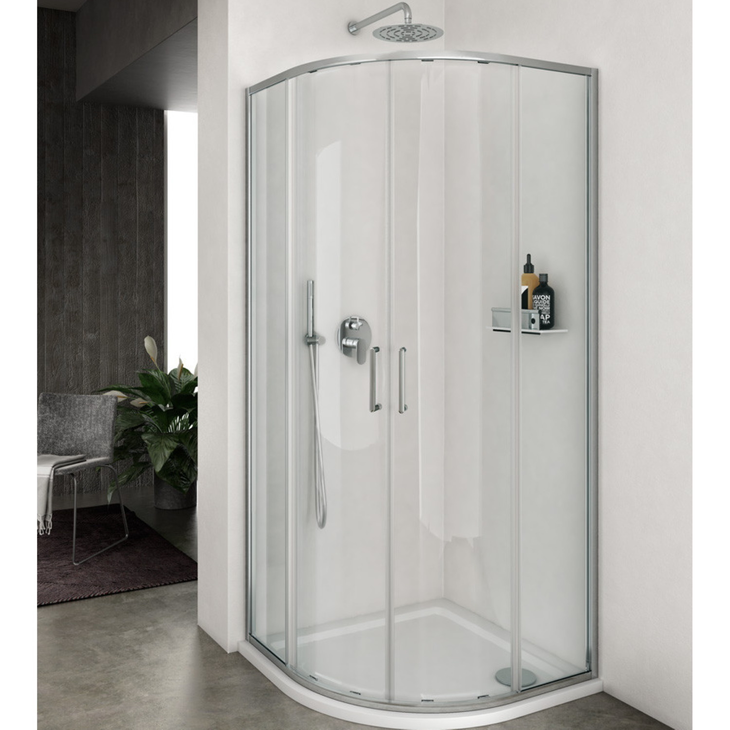 De profielen van deze douchecabine zijn gemaakt van aluminium en kennen een afwerking in een chromen kleur. Beide schuifdeuren zijn voorzien van verticale grepen waarmee u de deuren eenvoudig kunt openen en sluiten. De glazen wanden zijn voorzien van helder glas met een anti-kalk coating. Deze coating zorgt ervoor dat kalk- en zeepresten zich minder snel hechten aan het glas waardoor een lange levensduur gegarandeerd is.