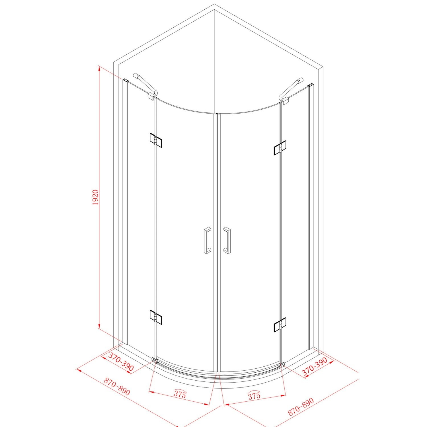 Belangrijk: Omdat de cabine ook op een douchebak te plaatsen is zijn de afmetingen 2 á 3 cm kleiner als aangegeven op de specificaties.