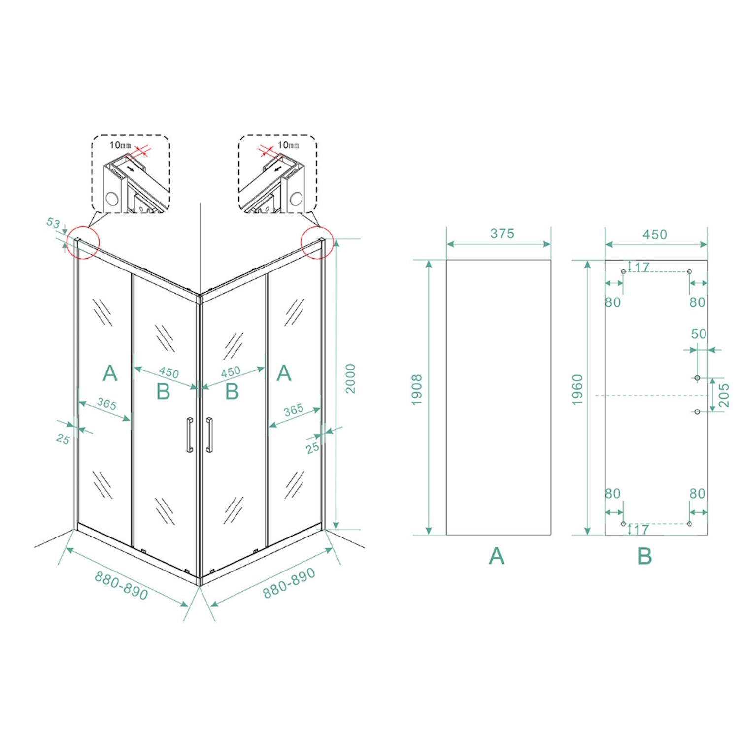 In de profielen van de cabine zit een verstelbaarheid van 1 centimeter. Deze cabine is verstelbaar van 88 tot 89 cm.