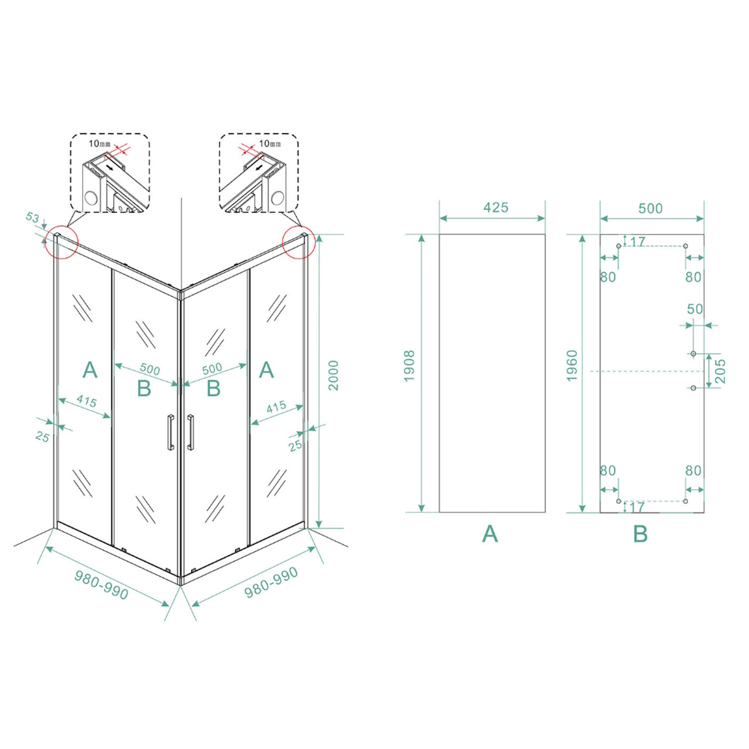 In de profielen van de cabine zit een verstelbaarheid van 1 centimeter. Deze cabine is verstelbaar van 88 tot 89 cm.