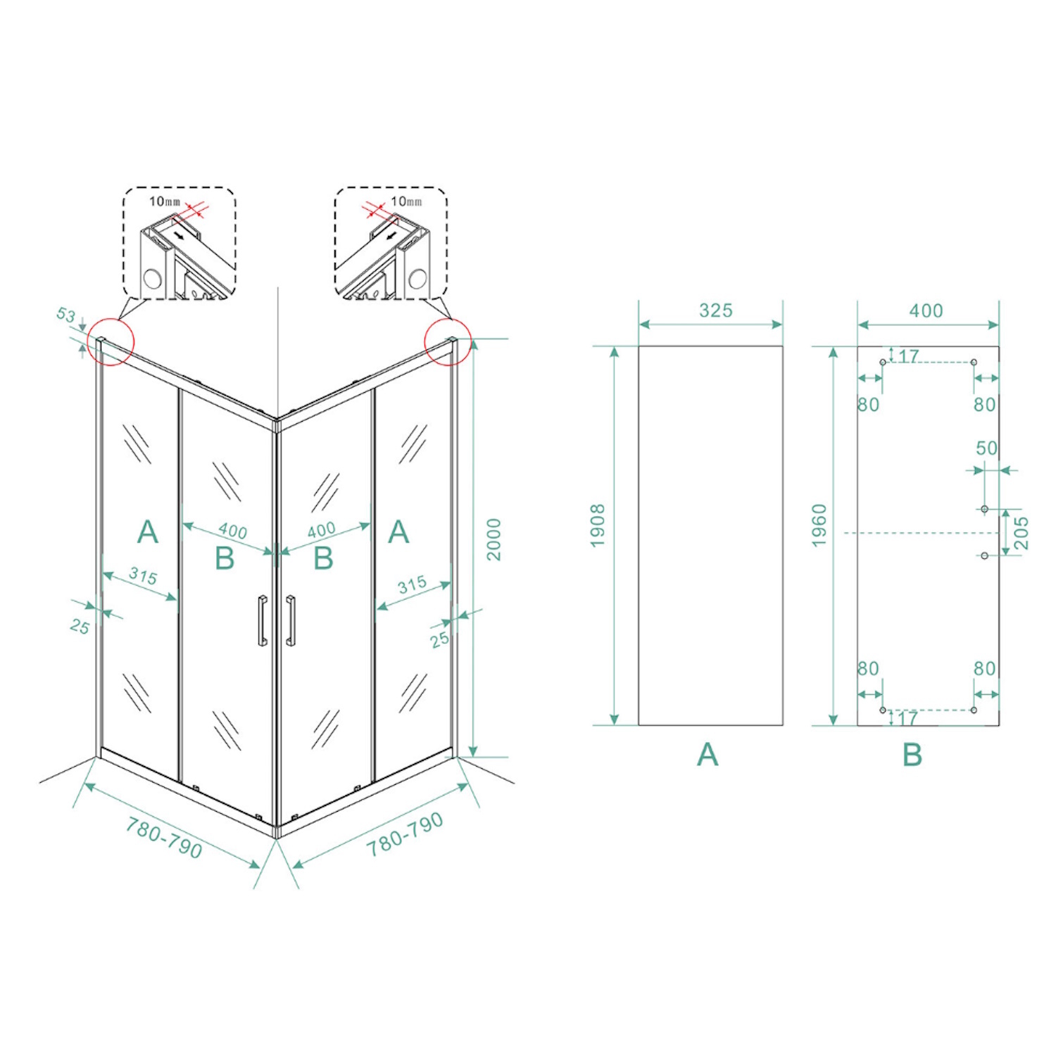 In de profielen van de cabine zit een verstelbaarheid van 1 centimeter. Deze cabine is verstelbaar van 88 tot 89 cm.