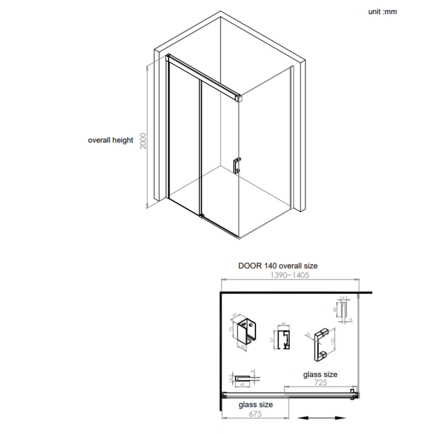 Het deurgedeelte van 140 centimeter is alleen te gebruiken in combinatie met het vaste gedeelte uit de Boss & Wessing Rollo serie. De geanodiseerde profielen zijn gemaakt van aluminium. De geanodiseerde profielen hebben een matt brushed afwerking waardoor zij een RVS-look krijgen. Dit deel is kaal op de vloer te plaatsen of juist op een douchebak (hiervoor hebben ze rekening gehouden met de afmeting).