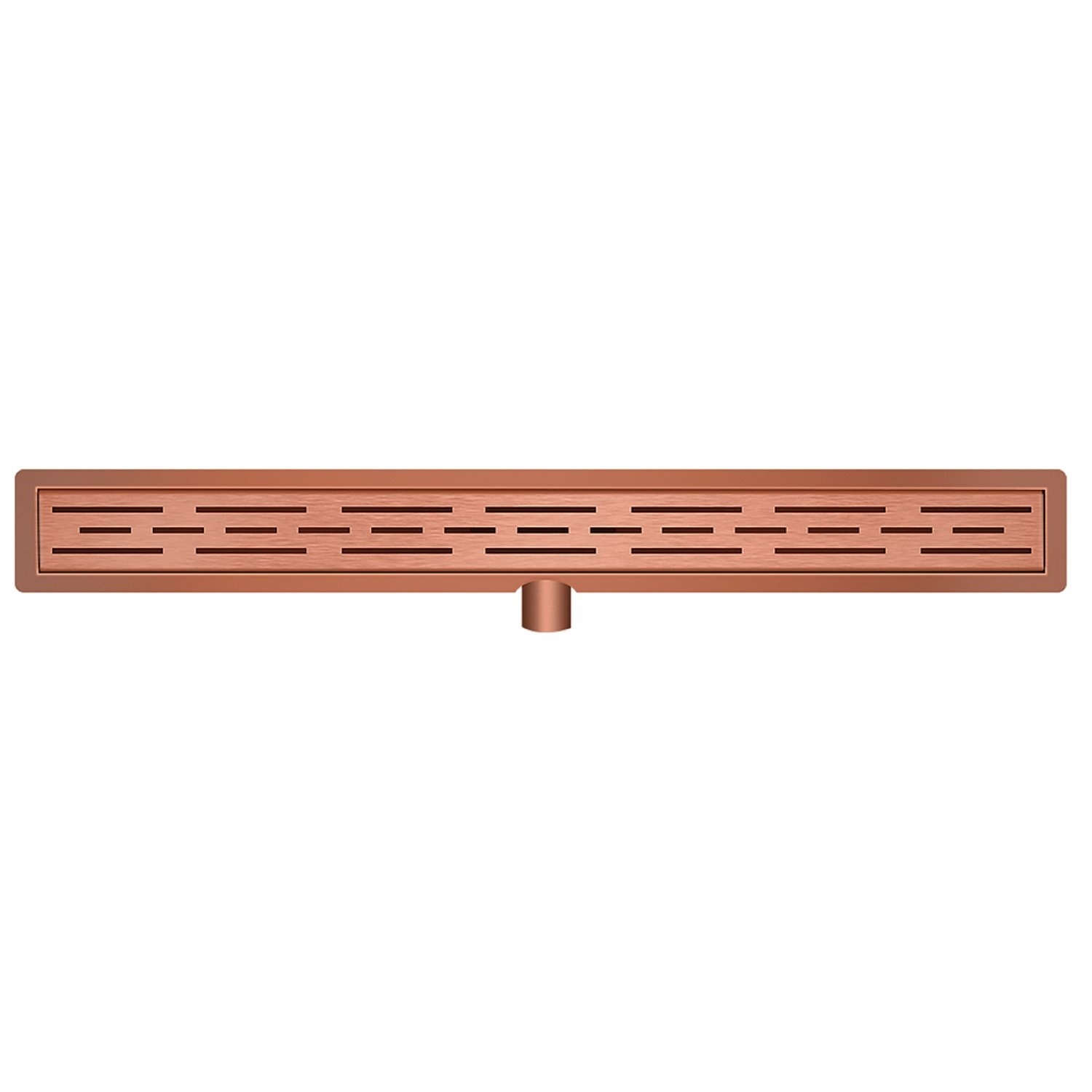 De douchegoot is voorzien van een geborsteld koper rooster. De douchegoot heeft een koperkleurige uitvoering en maakt het verschil in uw badkamer. Het rooster valt op in uw douchecabine en in combinatie met andere koperkleurige details maakt u het plaatje af. Het rooster is 80 centimeter lang en slechts 7 centimeter breed. Ook verkrijgbaar in 70, 90 en 100cm.