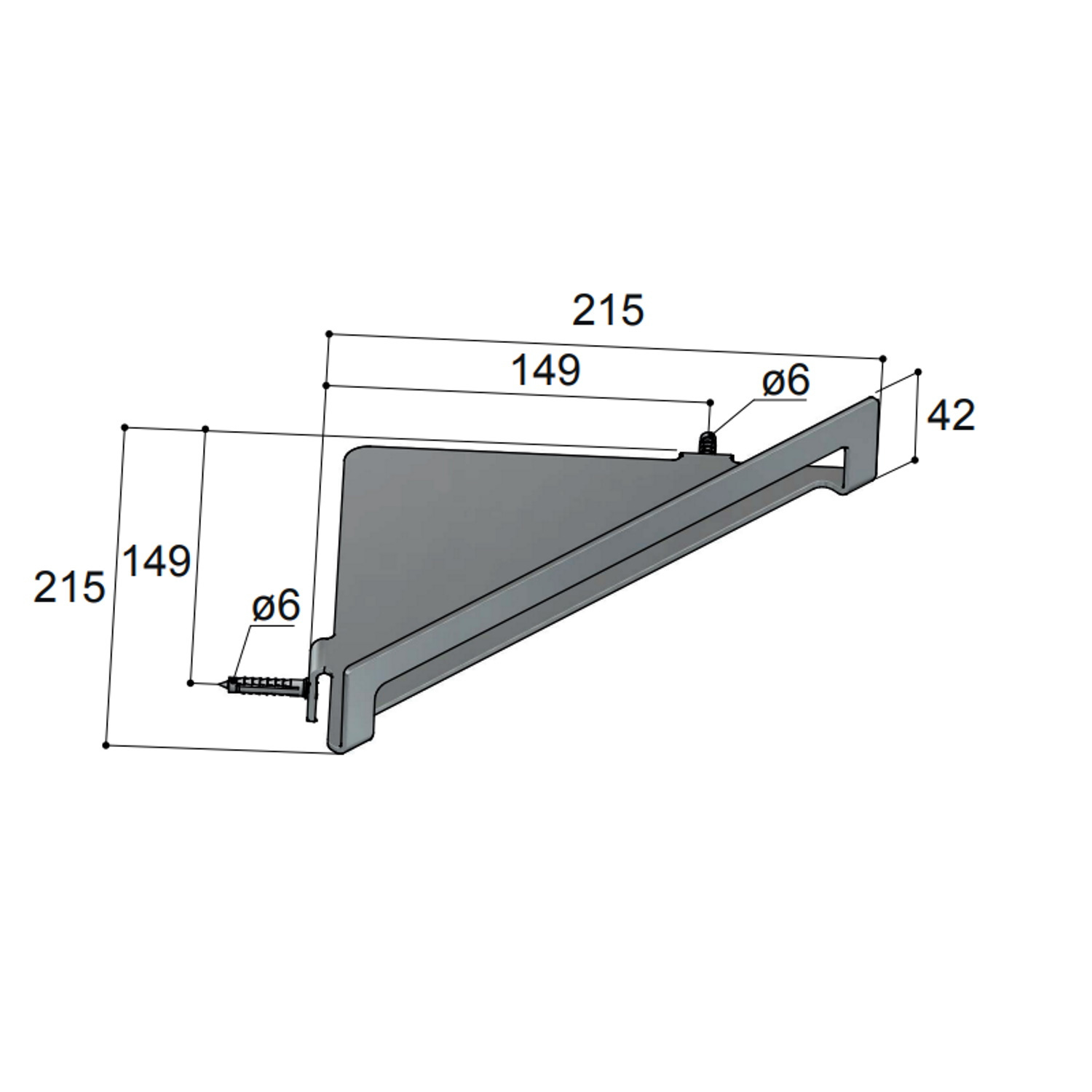 De korte zijden van de korf hebben een lengte van 21.5 cm. Door de vorm is deze douchekorf geschikt om in de hoek op te hangen. Zo neemt het weinig ruimte in en kunt u wel al uw douchespullen kwijt binnen handbereik. De korf is op te hangen met schroeven van 6 mm. Deze worden erbij geleverd. De H.O.H. maat is 14.9 cm.