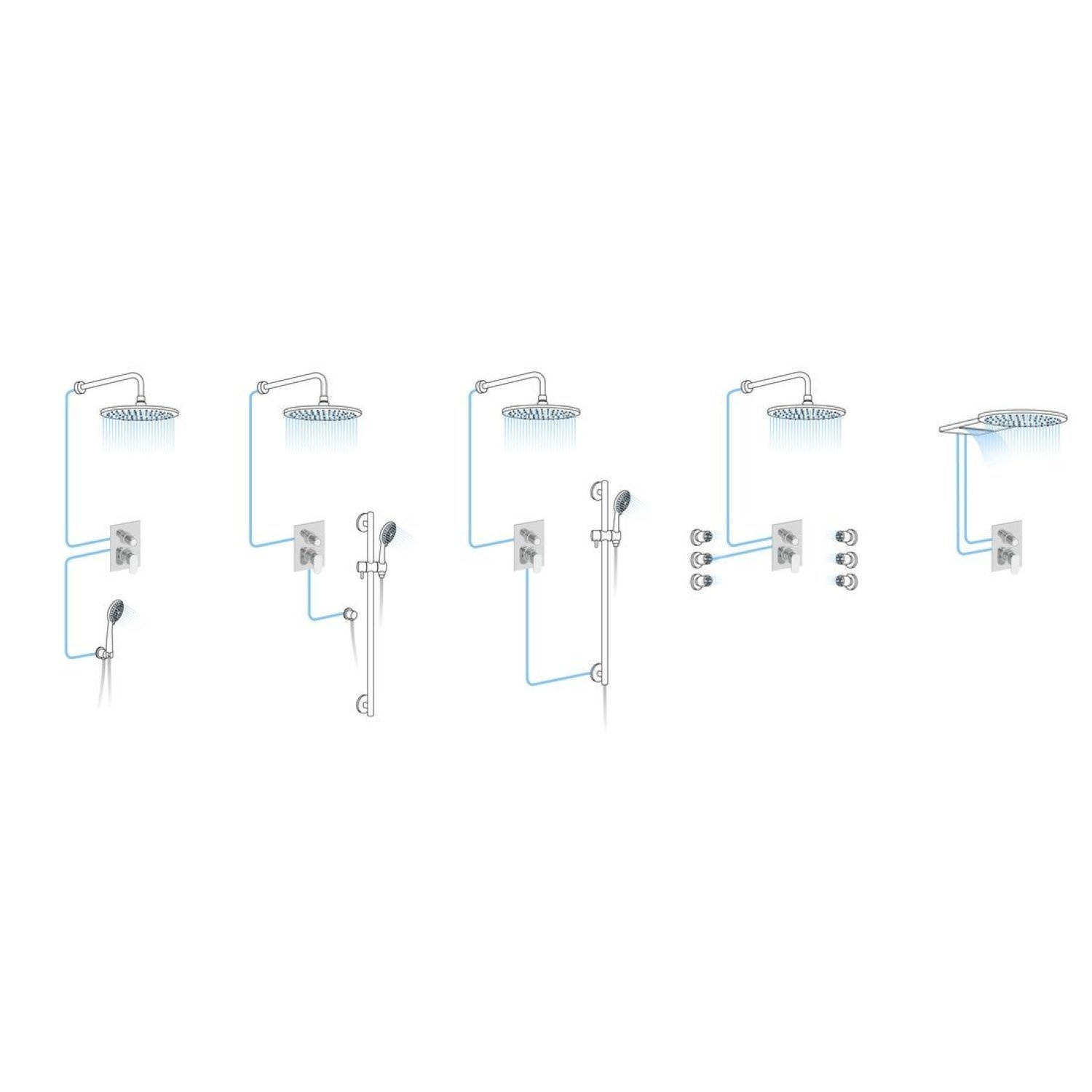 De thermostaat bestaat uit 3 bedieningen. Een bediening is voor de thermostaat, een bediening om te wisselen van hoofddouche naar handdouche en de andere gebruikt u om de kraan mee aan of uit te zetten. Deze luxe is ideaal voor als u even heerlijk wilt ontspannen. De aftappunten zijn niet gelijktijdig te gebruiken.