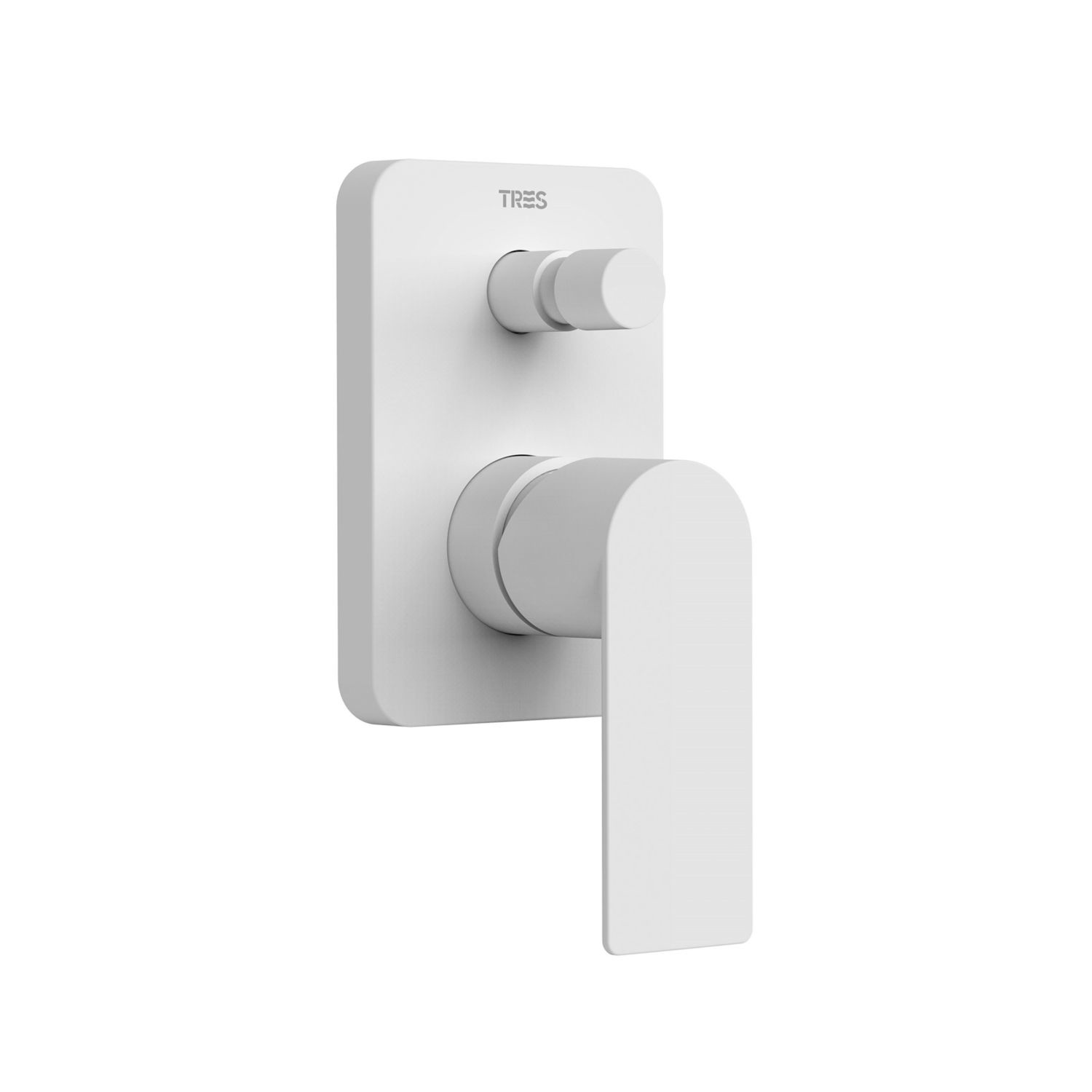 U bedient deze douchekraan met de hendel. Hiermee draait u de kraan open en dicht en mengt u warm en koud water tot de gewenste temperatuur. Met de omstelknop kunt u switchen tussen bijvoorbeeld handdouche en hoofddouche. De kraan is van messing in de kleur wit met matte finish.