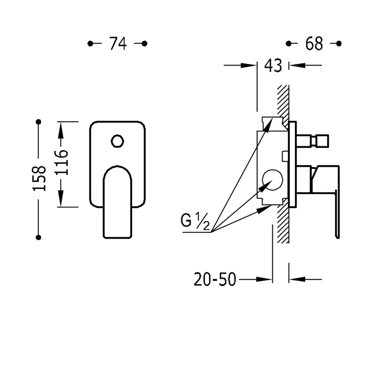 Deze douchekraan van Tres Loft Colors is een mooie, moderne toevoeging aan uw badkamer. De hendel en de omstelknop zitten op een afdekplaat met de afmetingen 11,6x7,4 cm. De totale lengte met de hendel erbij is 15,8 cm. De douchekraan heeft een diepte van 6,8 cm.