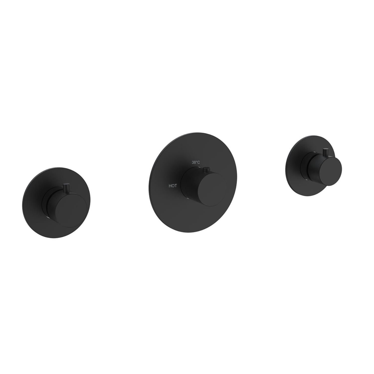 De douchekraan is gemaakt van messing en uitgevoerd in een mat zwarte kleur. Het artikel bestaat uit een thermostatische kraan en twee stopkranen. Belangrijk om te weten is dat dit alleen het afbouwdeel is. Het inbouwdeel dient u apart bij te bestellen.