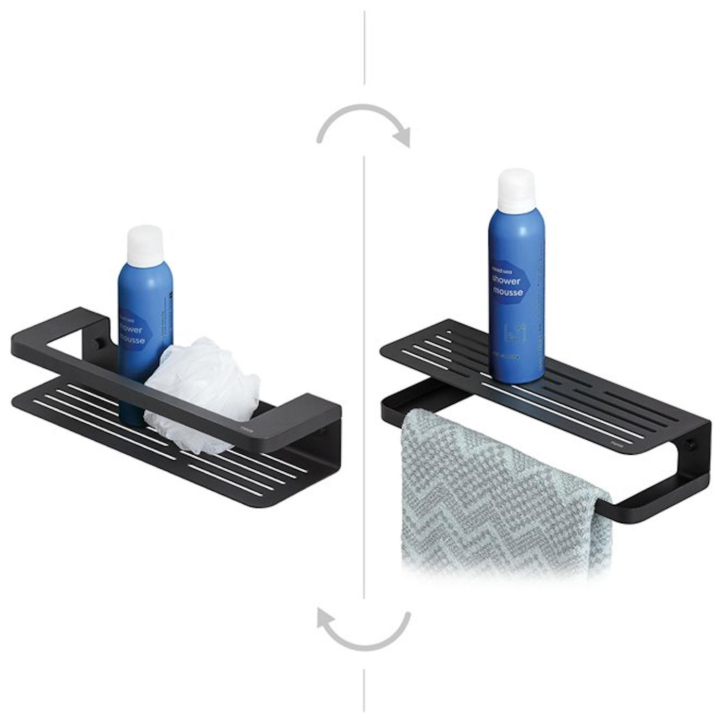 De Tiger Caddy heeft een uniek 2-in-1 design: gebruik hem als douchemand of als handdoekrek met plank. Afhankelijk van hoe u het product ophangt kunt u het als douchemand of handdoekrek gebruiken. De mand of rek is 35 cm breed, dat maakt hem ideaal voor de doucheruimte. Het plankje bevat gleuven waardoor het water met gemak kan weglopen. U hangt de Caddy op met schroeven, deze zijn inbegrepen.
