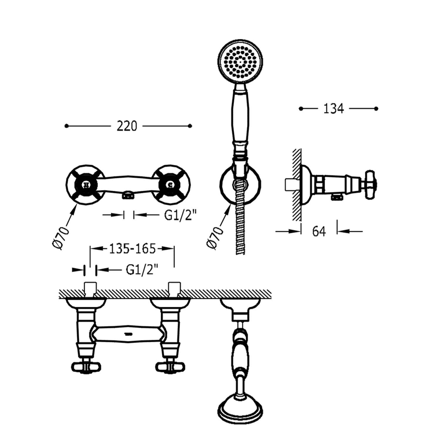 De opbouw douchekraan van Tres heeft een klassieke en nostalgische uitstraling. Dit geldt voor de hele serie Clasic. De kraan is gemaakt van messing en wordt bedient door 2 kruisgrepen waarmee de tempratuur wordt bepaald. De kraan wordt geleverd inclusief een ronde antikalkhanddouche met richtbare steun en geribbelde doucheslang. De doucheslang heeft een lengte van 170 cm. Het design van de handdouche is voorzien van een wit handvat voor een klasieke uitstraling.