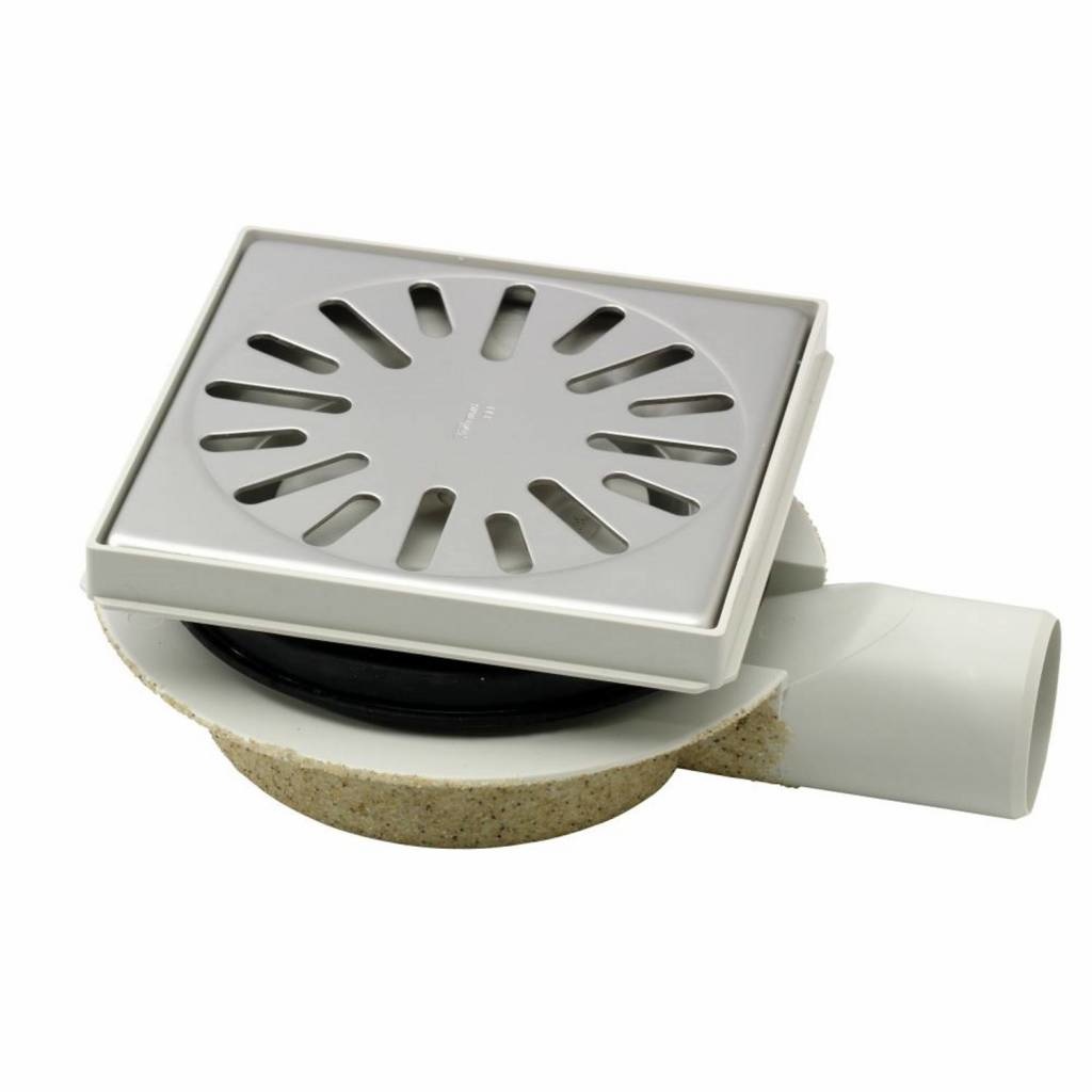 Aquaberg ABS vloerput m. ABS opzetstuk bezand m. RVS rooster zijuitl. Ø50mm verstelbaar 146x146mm m. PPC reukafsluiter, reukslot 32mm 4016146A