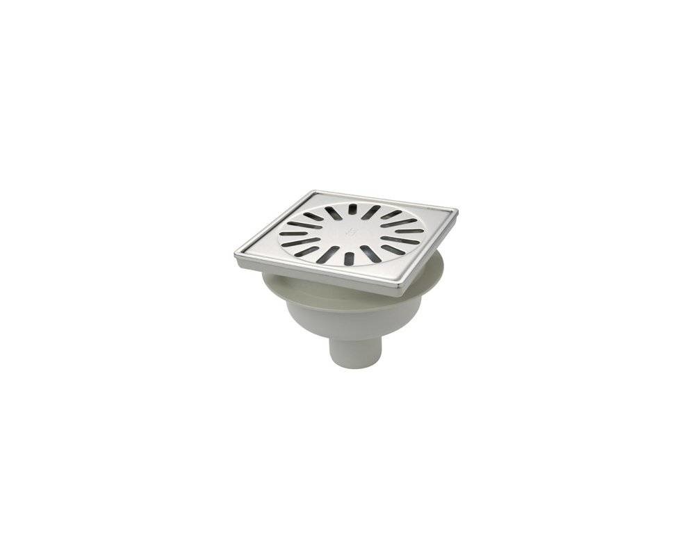 Aquaberg ABS vloerput m. RVS rooster m. RVS sierrand m. onderuitl. Ø50mm 150x150mm m. PPC reukafsluiter, reukslot 50mm 4215R