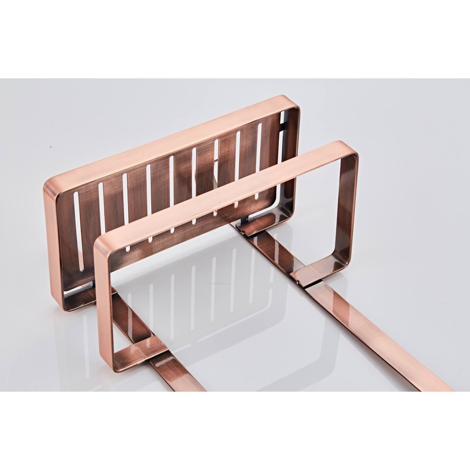 Het doucherekje / shampoo houder van de serie Copper heeft een hoogte van 52 cm een breedte van 23 cm en is gemaakt van messing. Het doucherekje is ideaal om over de douchewand heen te plaatsen of aan een deur. Doordat het rekje hoog is kunnen er gemakkelijk langere shampoo flessen staan. Onder het bakje steken haakjes half rond naar voren. Hierdoor kan er bijvoorbeeld een wisser aan gehangen worden. Ook heeft de serie meerdere accessoires zodat u uw badkamer kunt combineren met andere elementen uit de serie. Zo voorkomt u kleurverschil in uw accessoires.