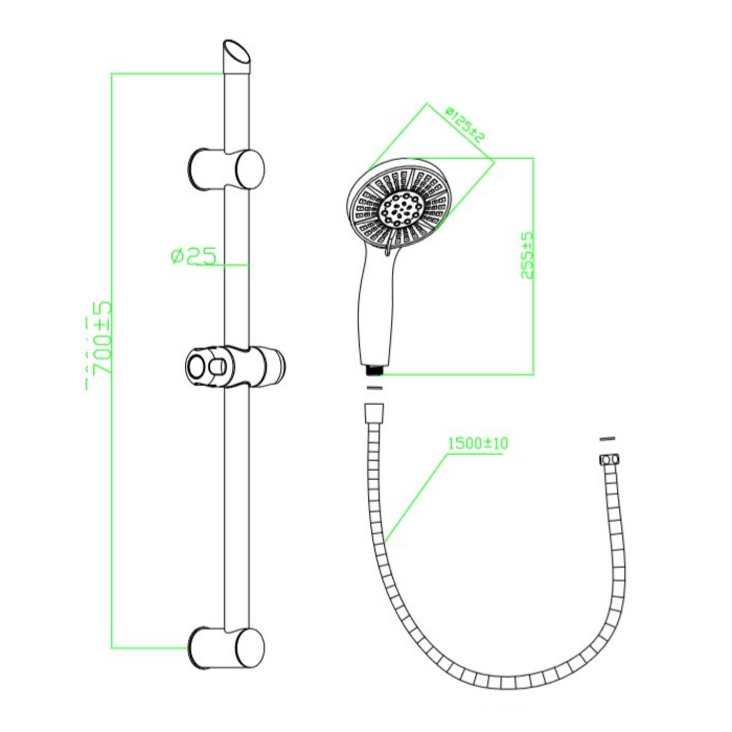 De Adria doucheset van het merk Schutte komt inclusief een handdouche, een douchestang van 70 cm en een doucheslang van 150 cm met een chromen afwerking. De handdouche beschikt over vijf functies en een waterstop functie. Daarnaast bevat de handdouche antikalk nozzles waar kalk zich niet aan kan hechten. De chromen handdouche heeft een diameter van 12.5 cm en is voorzien van een 1/2 aansluiting.