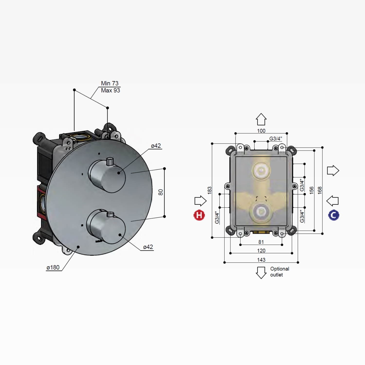 Let op! Deze douchethermostaat wordt geleverd exclusief inbouwdeel, deze kunt u bij verwante producten toevoegen.
