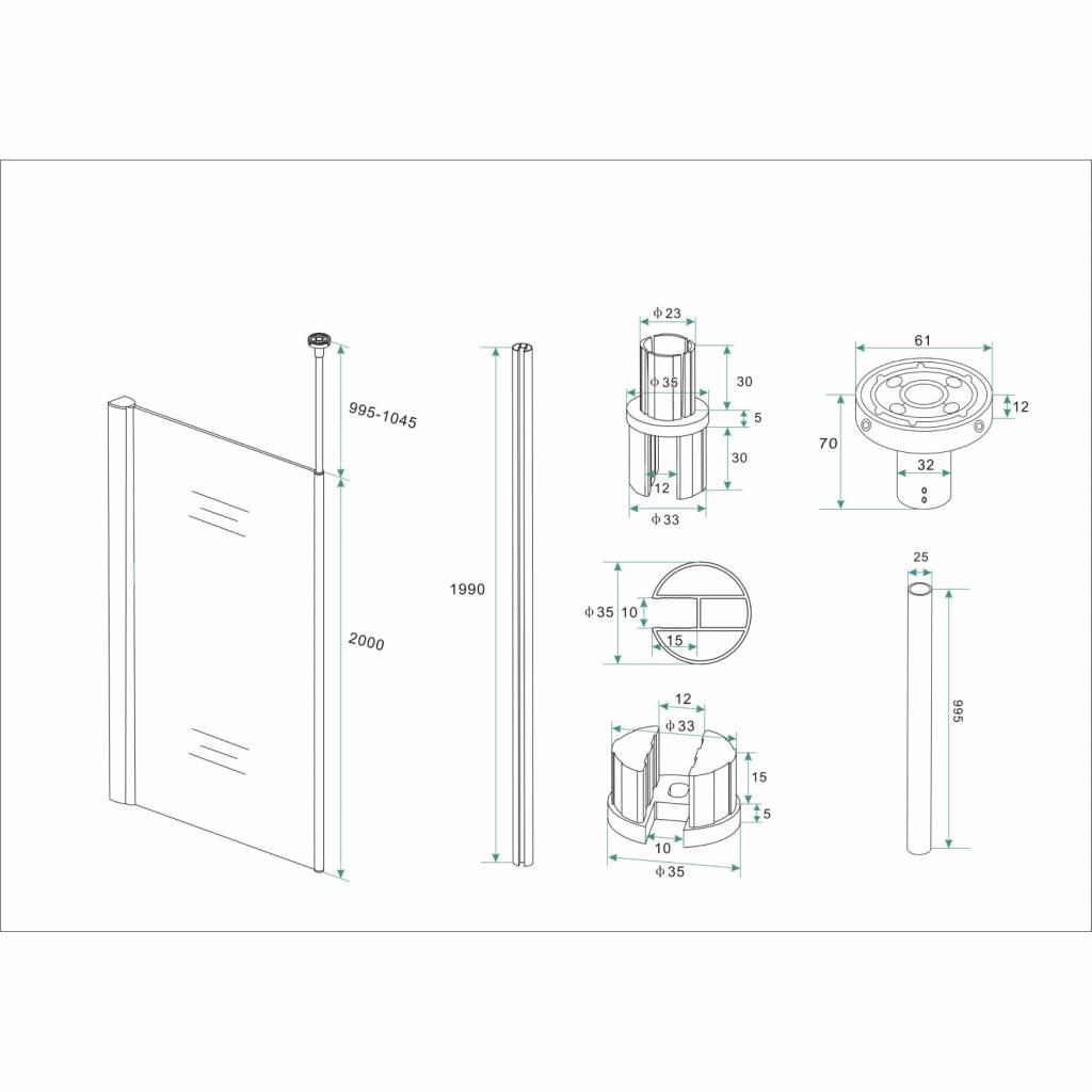 De ronde stabilisatiestang heeft een lengte van 200 cm. het voordeel is dat hij verstelbaar is van 200.5 t/m 304.5 cm. Daarom goed te gebruiken bij verschillende hoogte plafonds. Het glasprofiel dient vastgekit te worden op de 10mm dikke glasplaat.