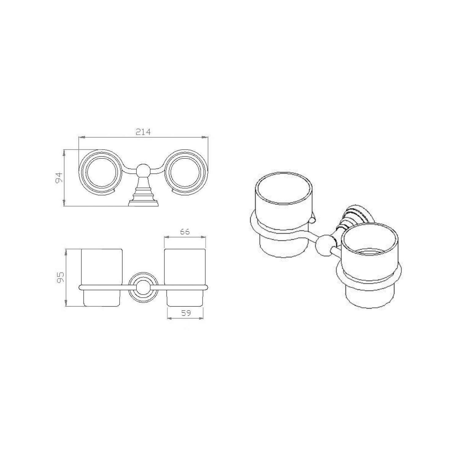 Dubbele Bekerhouder Sapho Diamond Hangend Chroom / Melkglas