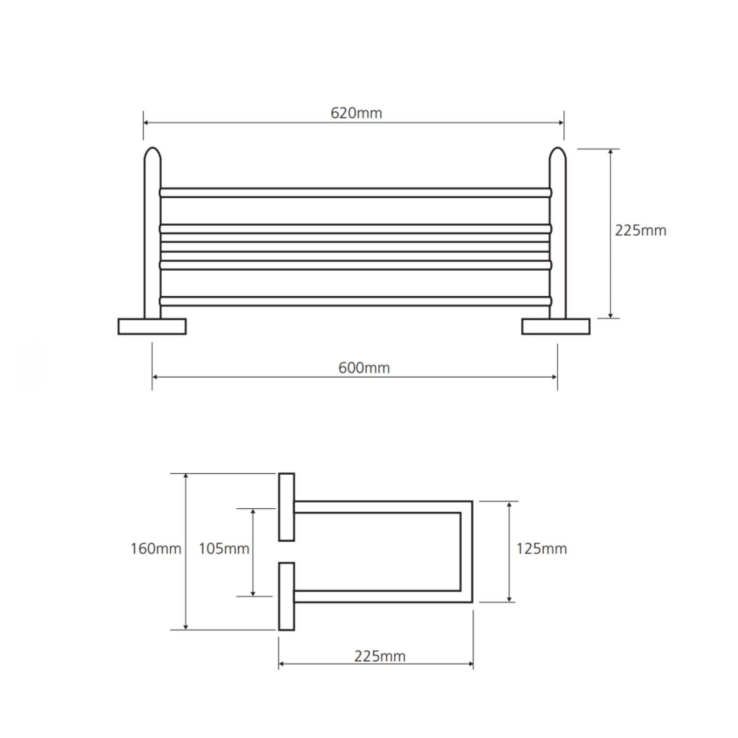 - - Merk: Sapho - Serie: X-Square - Materiaal: Verchroomd messing - Kleur: Chroom - Lengte: 62 cm - Diepte: 16 cm - Hoogte: 22.5 cm - Model: Hangend - Installatie: Boren - Geschikt voor meerdere handdoeken - Fabrieksgarantie: 10 jaar