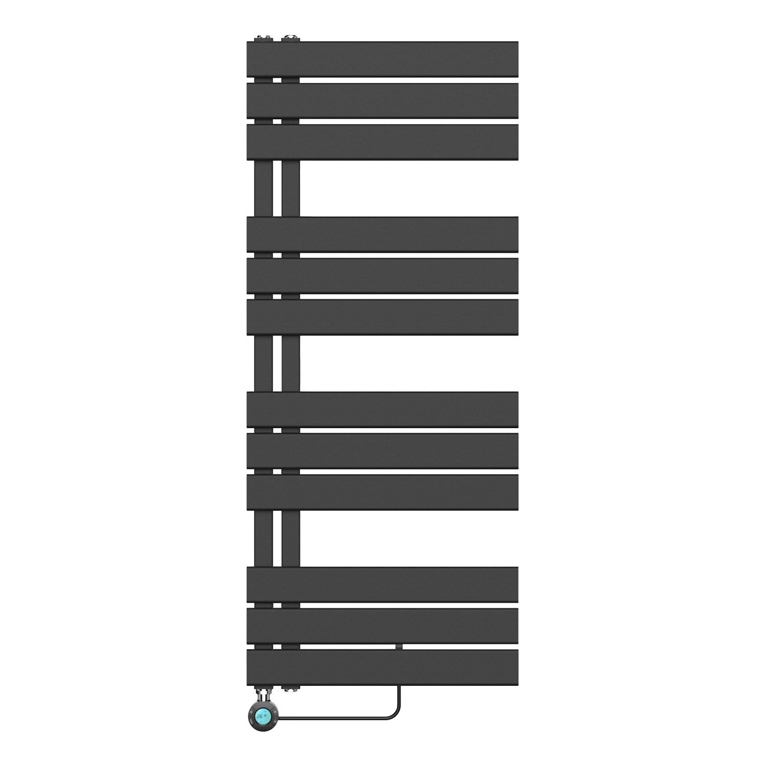 De radiator heeft een hoogte van 120 cm en een breedte van 50 cm. De radiator heeft een wattage van 593 en is ook verkrijgbaar in een witte kleur.