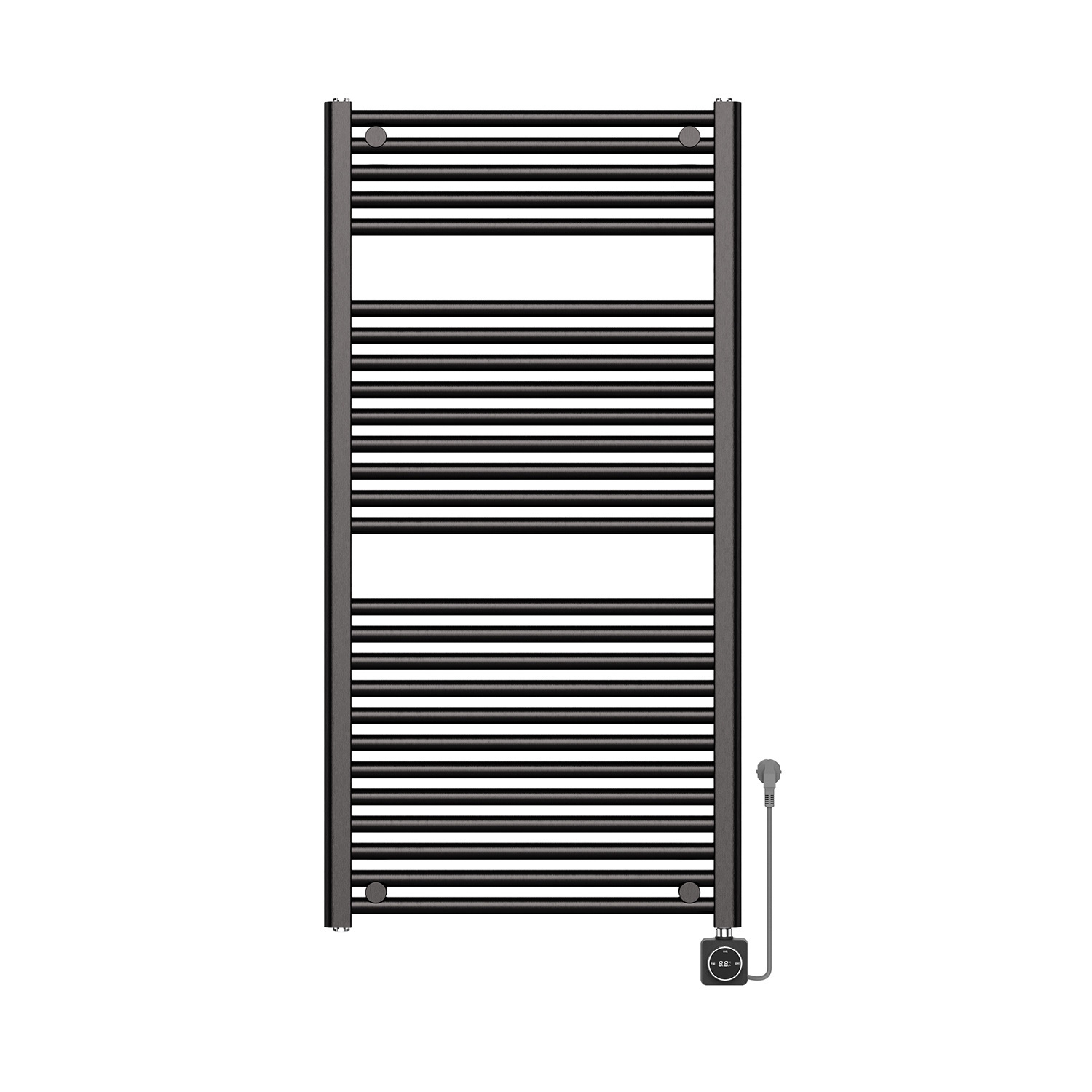 Bent u op zoek naar een elektrische radiator voor in uw badkamer? Dan is deze radiator van Wiesbaden uit de serie Elara helemaal iets voor u. De radiator heeft een Gunmetal kleur en hij is gemaakt van staal. De radiator is 118.5 cm lang en 60 cm breed. De stroomkabel heeft een lengte van 120 cm. De aansluiting zit aan de rechterkant onderaan de radiator en hij heeft een capaciteit van 700 Watt. De radiator is IPX4, wat betekent dat hij spatwaterdicht. Hij beschikt over smart wifi, zodat u de radiator met een app op je telefoon kunt bedienen. Zo heeft u een heerlijk warme badkamer als u binnen komt. Er zit een digitale thermostaat op deze radiator met een Eco, Timer, Comfort en Boostfunctie. Deze radiator is inclusief een ophangset en bevestigingsmateriaal. Door zijn design en kleur past deze radiator goed in elke moderne badkamer.