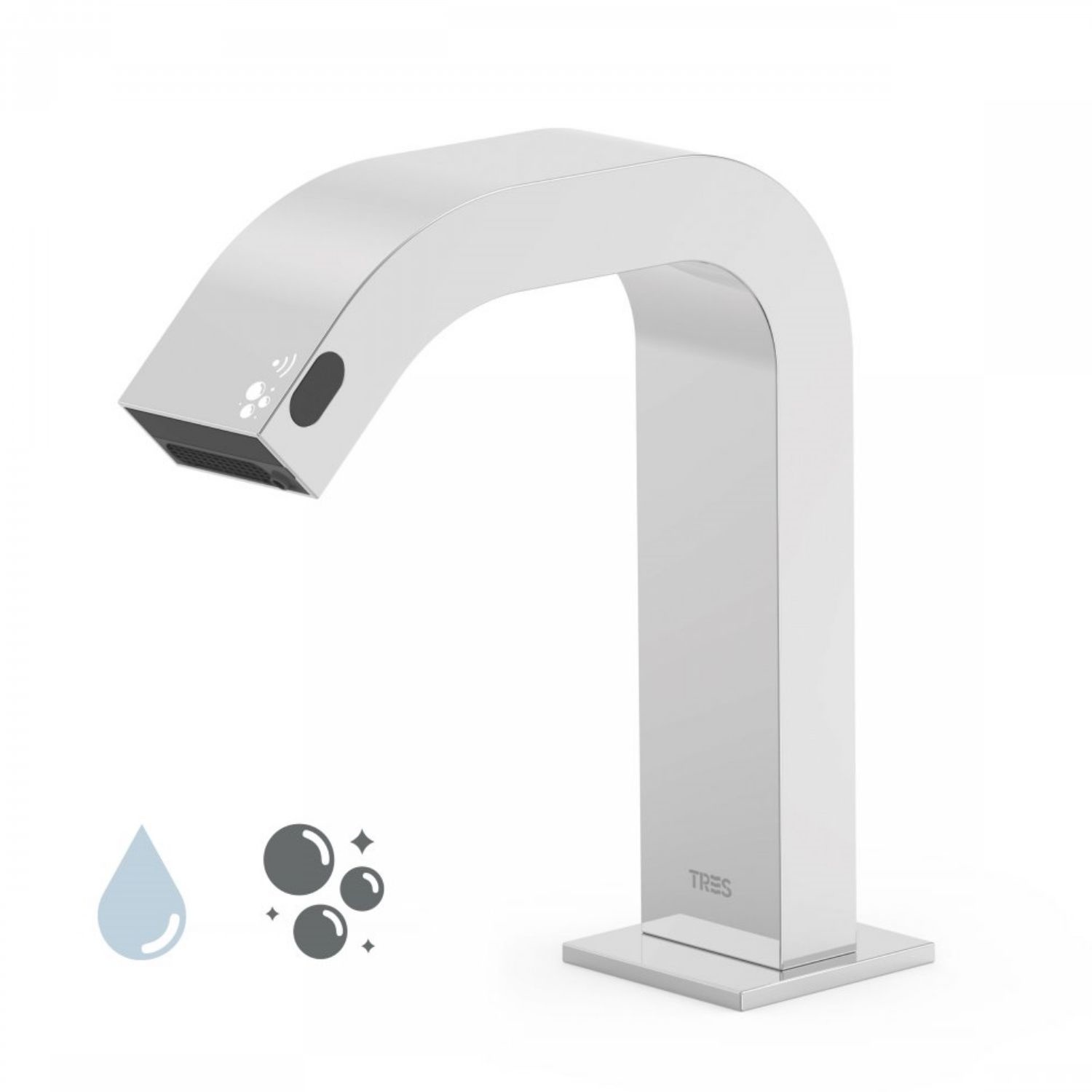 Met dit elektronische multifunctionele artikel kunt u altijd hygiënisch en duurzaam uw handen wassen. Het is namelijk niet alleen een kraan, maar ook een zeepdispenser. Zo kunt u zonder de kraan aan te raken zeep op uw handen doen en uw handen wassen. De kraan gaat automatisch weer uit. Zo verspilt u ook geen water.