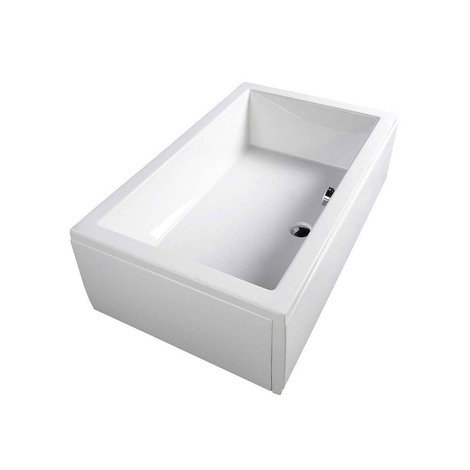 De rechthoekige douchebak is voorzien van een afvoergat met een diameter van 52 mm in het midden van de douchebak. Er wordt geen afvoer meegeleverd en ook de universele potenset zult u moeten bestellen. De voeten zijn niet inbegrepen in het pakket