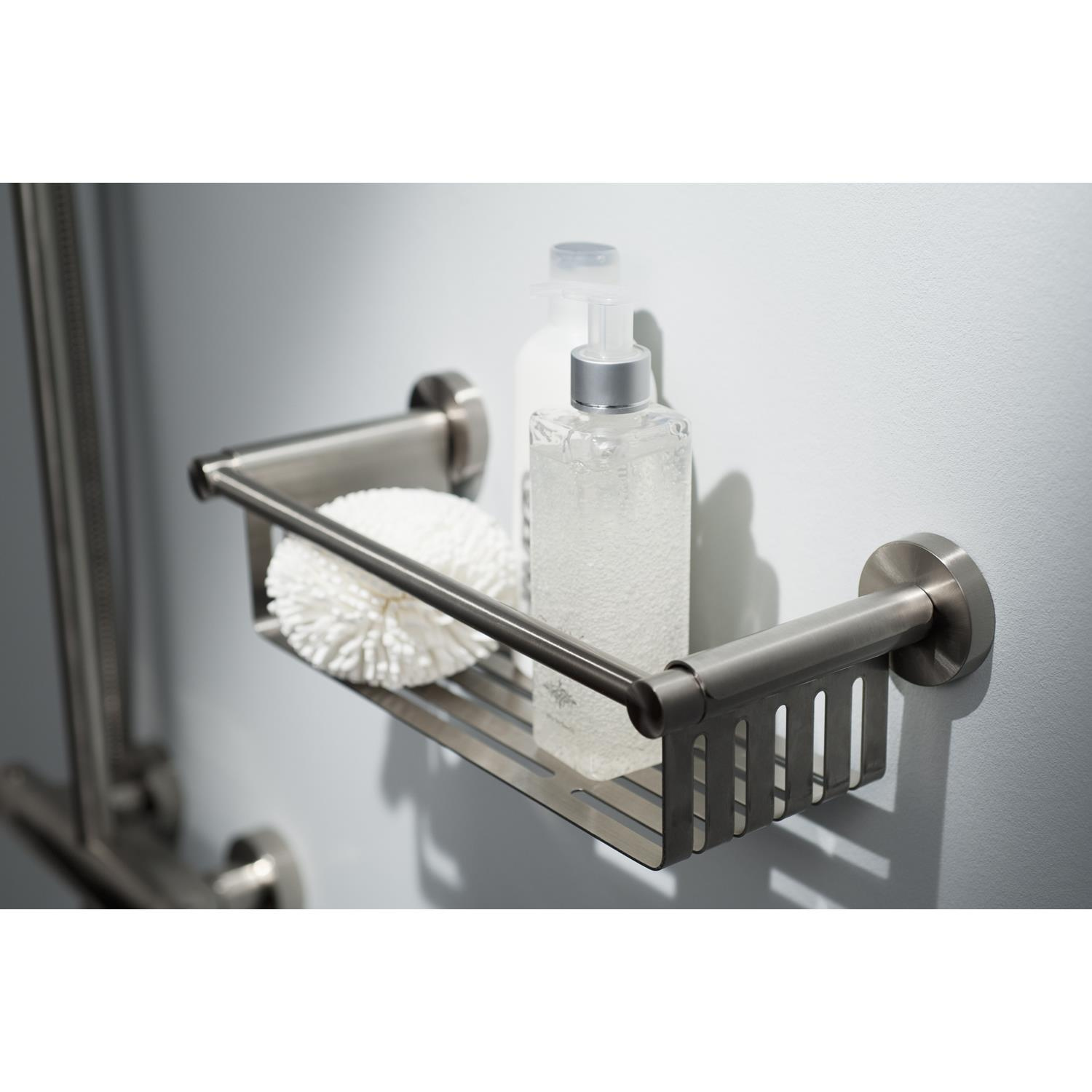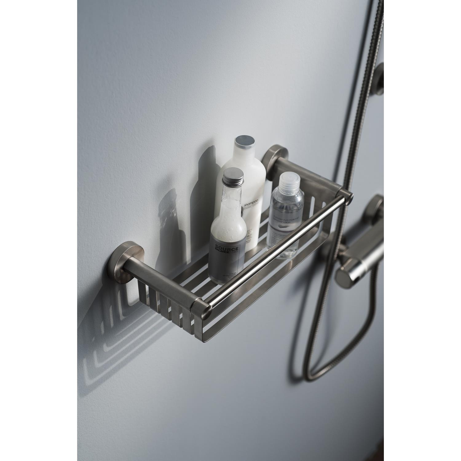 Richt uw badkamer compleet in met Kosmos, onze meest succesvolle serie. U kunt volop combineren met kranen, meubels, douchecabines en accessoires. In dit douchemandje van Haceka blijft de zeep, shampoo en gel gemakkelijk staan. De onderkant is vlak en de rail is hoog, daardoor staan de flessen altijd stevig.