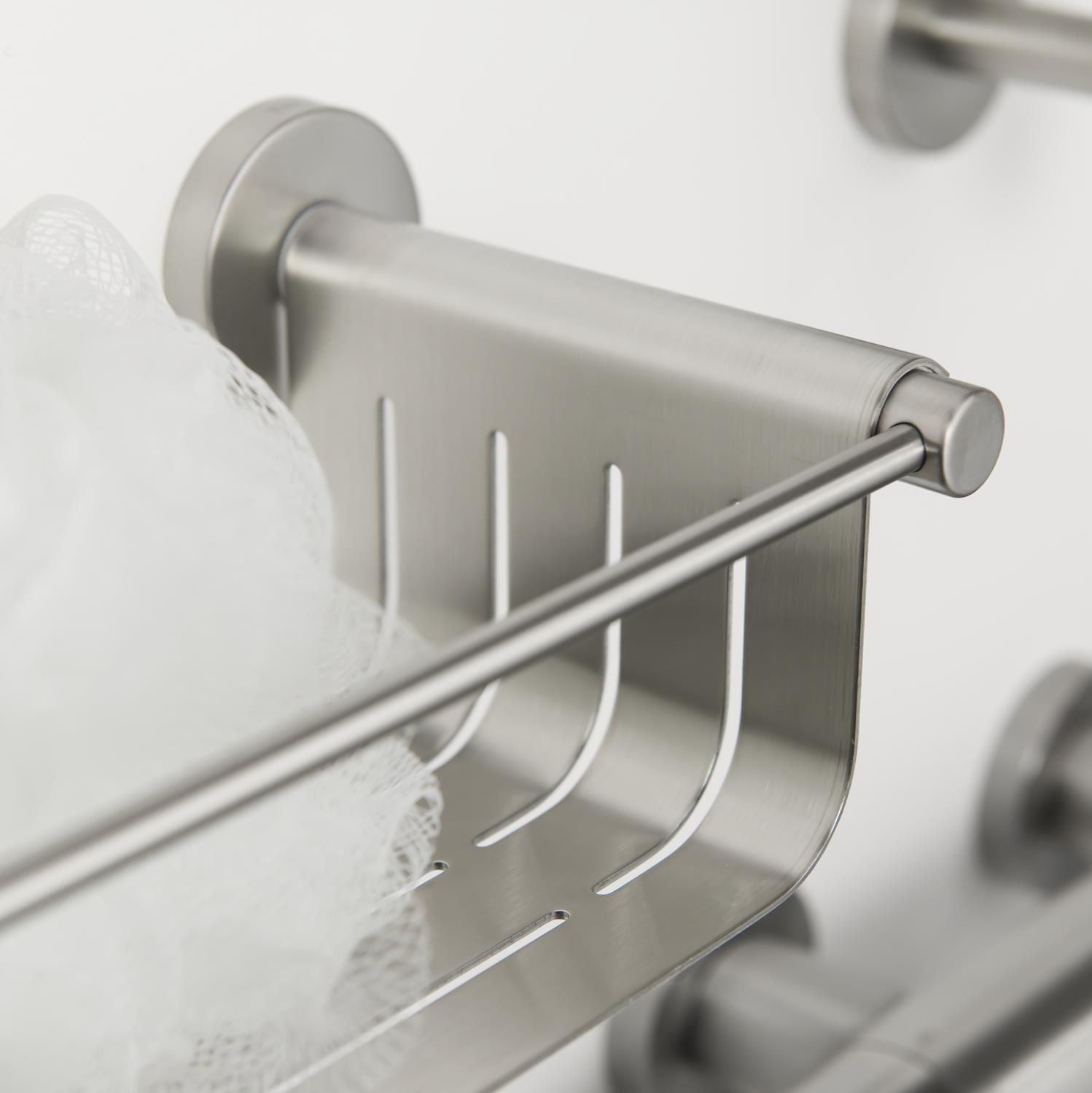 De spons-zeephouder van de accessoireserie Boston is uitgevoerd in glanzend RVS. en is ook verkrijgbaar in geborsteld RVS. Dit product kan aan de wand worden geschroefd. maar kan ook met behulp van Tigerfix 1 op een gladde en harde ondergrond geplakt worden. U hoeft dus niet te boren. (Tigerfix is los verkrijgbaar). Er zijn van deze serie diverse sanitair accessoires verkrijgbaar. Dit product maakt deel uit van het Boston totaalconcept. dat verder bestaat uit kranen. badmeubelen. douche accessoires en douchecabines. alles in dezelfde stijl.