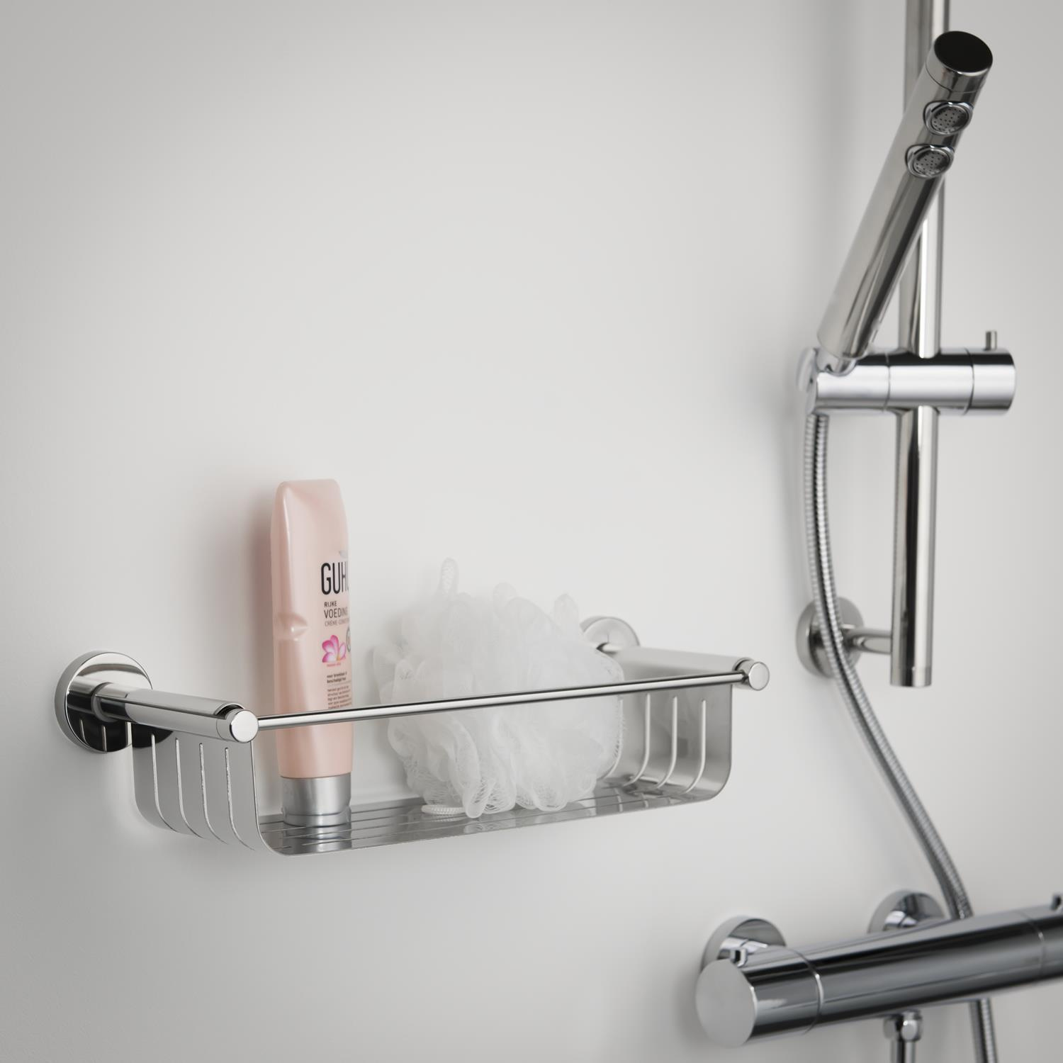 De spons-zeephouder van de accessoireserie Boston is uitgevoerd in glanzend RVS. en is ook verkrijgbaar in geborsteld RVS. Dit product kan aan de wand worden geschroefd. maar kan ook met behulp van Tigerfix 1 op een gladde en harde ondergrond geplakt worden. U hoeft dus niet te boren. (Tigerfix is los verkrijgbaar). Er zijn van deze serie diverse sanitair accessoires verkrijgbaar. Dit product maakt deel uit van het Boston totaalconcept. dat verder bestaat uit kranen. badmeubelen. douche accessoires en douchecabines. alles in dezelfde stijl.