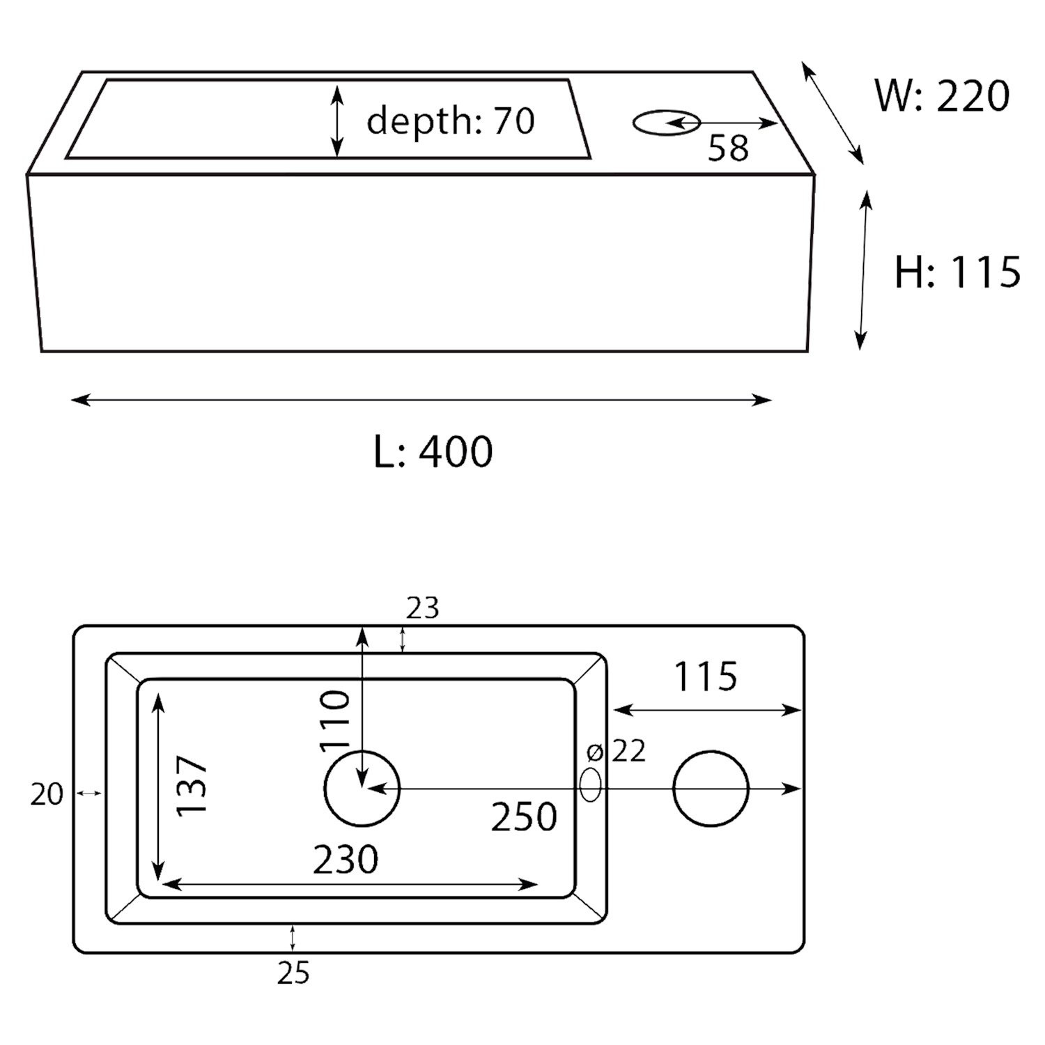De fontein wordt geleverd zonder kraan en afvoerplug, zodat je deze naar eigen smaak kunt kiezen en aanpassen.