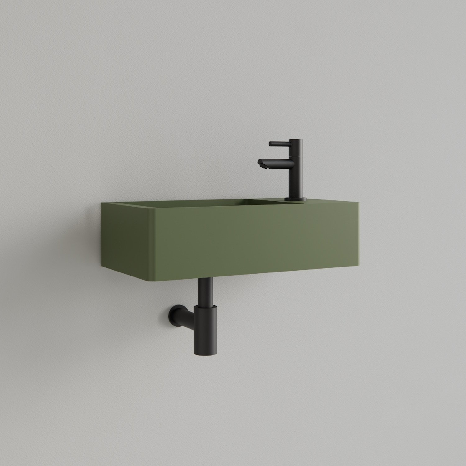 Deze fontein van het merk Gliss Design is gemaakt van het gegoten materiaal Solid Marble en komt uit de serie Freya. De fontein heeft een strakke look door zijn rechte hoeken. De olijf groene kleur met matte afwerking zorgt voor een speels maar ook modern uiterlijk en is te combineren met veel kleuren. De fontein heeft een breedte van 40 cm met een diepte van 22 cm. De hoogte van de fontein is 10 cm en hij is voorzien van 1 kraangat aan de rechterkant van de fontein.