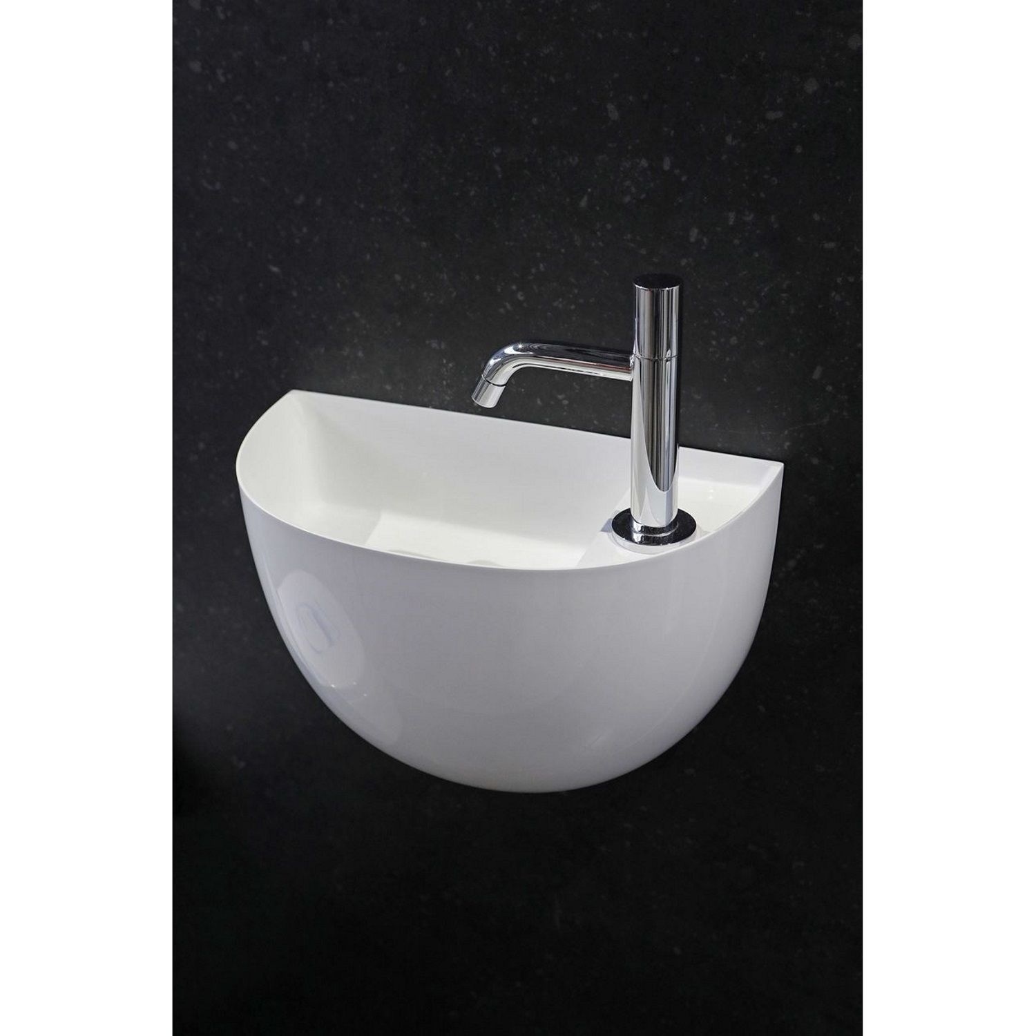 Dit bijzondere fontein met een halfronde vorm van het merk Luca Sanitair is een opvallende verschijning. Het fontein is voorzien van een dunne rand wat een fraai effect aan het artikel geeft. Het fontein is afgewerkt in een glanzend witte kleur en dient aan de wand bevestigd te worden. Het fontein is uitgerust zonder kraangat: deze dient u er, mocht u daar gebruik van willen maken, zelf in te boren.