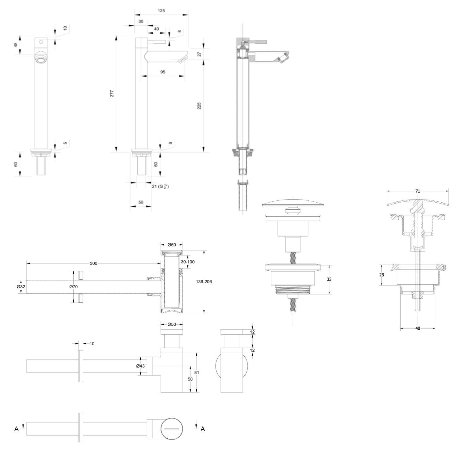De hoge kraan is goed te combineren met een opbouwwaskom. De fonteinkraan uit de set is gemaakt van messing, heeft een hoogte van 27.7 cm en een diepte van 12.5 cm. De uitloop heeft een hoogte van 22.5 cm en een diepte van 9.5 cm. De koudwaterkraan is eenvoudig te bedienen met de enkele hendel aan de bovenzijde waarmee u de waterstroom kan regelen. Naast een kraan komt de set ook met een waste en designsifon in dezelfde kleur.