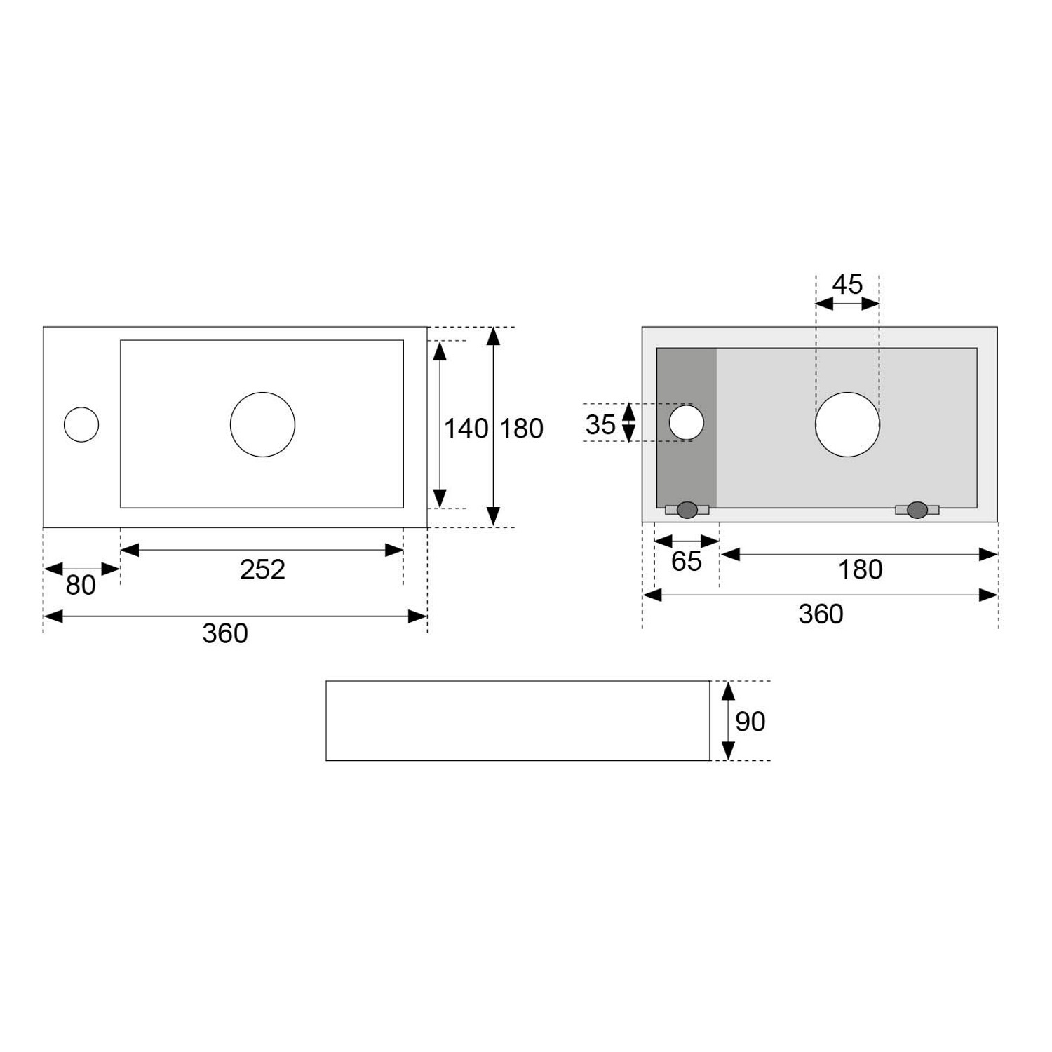 Let erop dat deze fontein het kraangat aan de linkerkant heeft, de set is ook verkrijgbaar met het kraangat rechts.