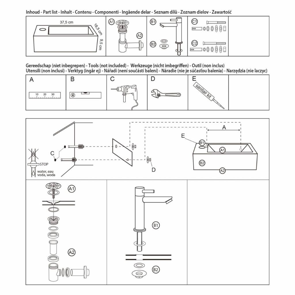Deze moderne fonteinset Helios is geschikt voor vrijwel iedere sanitaire ruimte. De wastafel is enkel op een manier te plaatsen namelijk recht tegen de muur met het kraangat en kraan links. De bevestigingspunten bevinden zich uit het zicht van de gebruiker.