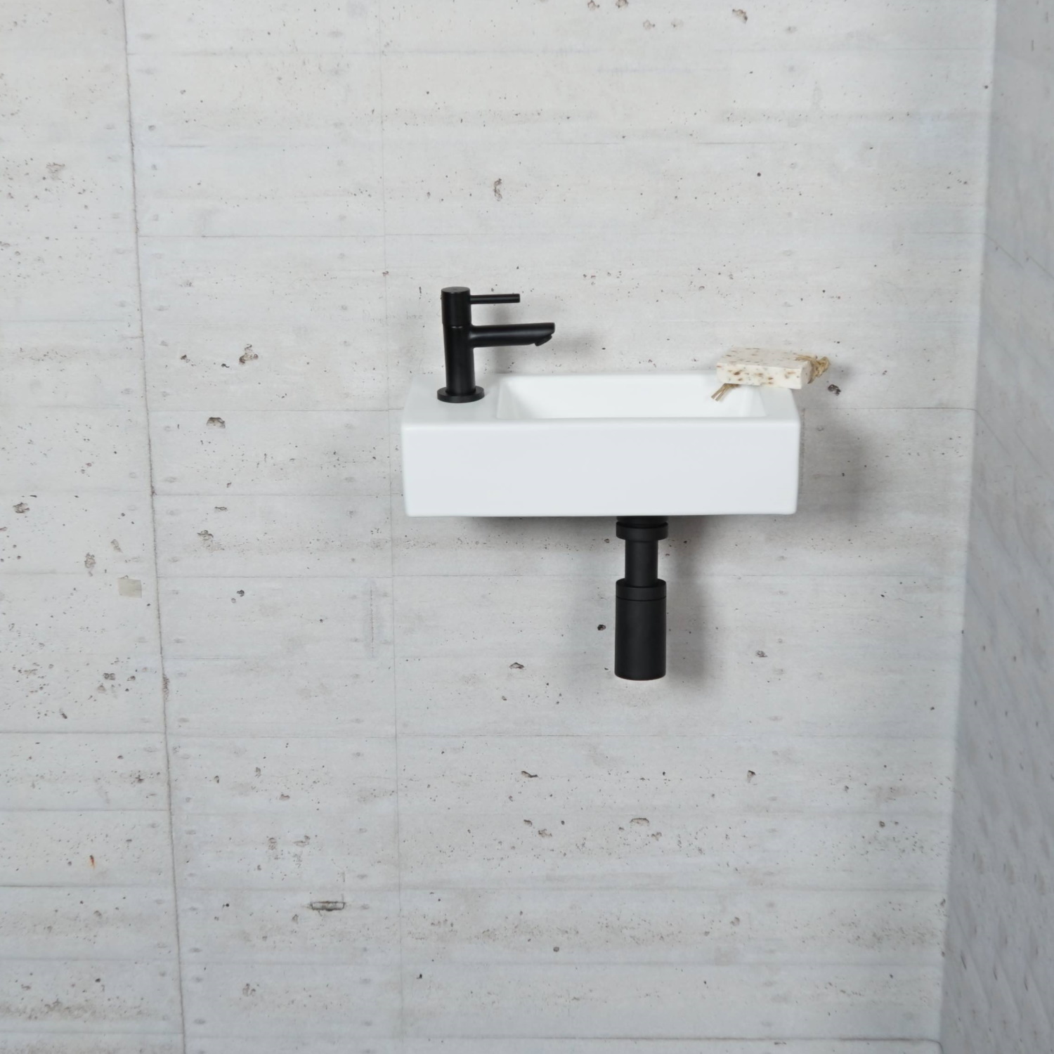 Een complete moderne fonteinset wat u een mooi prijsvoordeel oplevert. De Mat Witte Fontein set Wiesbaden Color Is gecombineerd met een Mat Zwarte kraan. De set word compleet gemaakt met een mat zwarte clickwaste en sifon.