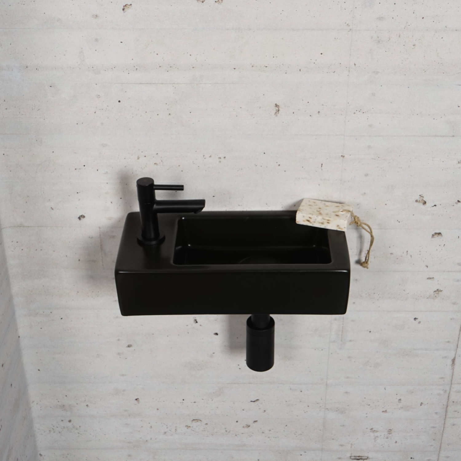 Een complete moderne fonteinset wat u een mooi prijsvoordeel oplevert. De Mat zwarte Fontein set Wiesbaden Color Is gecombineerd met een Mat Zwarte kraan. De set word compleet gemaakt met een Mat Zwarte clickwaste en sifon.