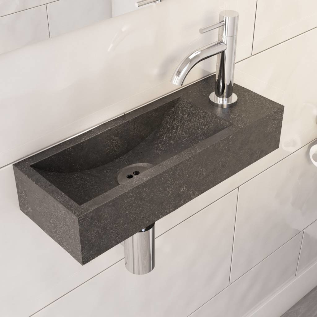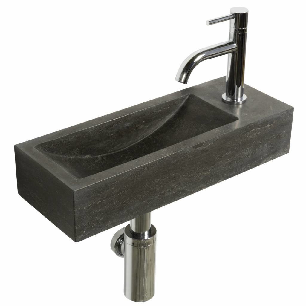 Het unieke van deze set is dat het fonteinbakje gemaakt is van natuursteen. Natuursteen ook wel lime stone genoemd is een kalksteen en de kleur kan variëren van blauw tot bruin grijs. Hardsteen is een materiaal dat steeds vaker wordt gebruikt. Omdat de structuur van natuursteen altijd anders is, is elk product uniek. Het rechthoekige model zorgt voor een strakke afwerking in uw toilet.