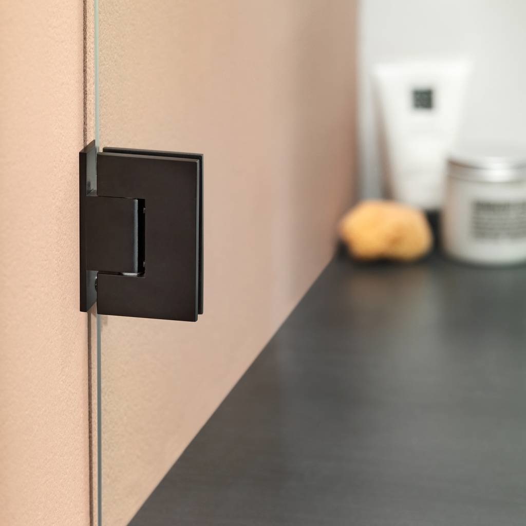 Deze draaideur, voor combinatie met een vaste wand, wordt geleverd inclusief scharnieren en deurgreep. Wat deze deur écht bijzonder maakt, is de matzwarte afwerking. Zo breng je een unieke sfeer in je badkamer.